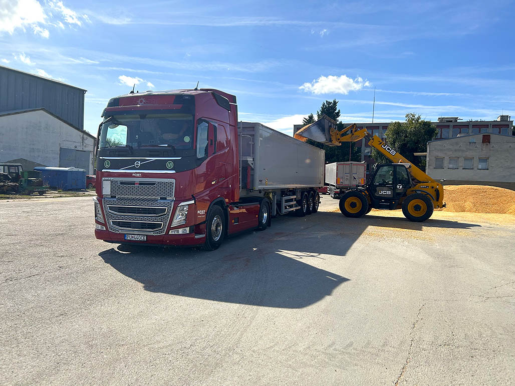 Spoločnosť ROST disponuje rozsiahlym vozovým parkom, ktorý pozostáva z kamiónov s vyklápacími návesmi. Naši vodiči jazdia na spoľahlivých ťahačoch značiek Volvo s modernými motormi Euro VI s minimálnym znečistením životného prostredia. Dopravná vybavenosť z nás robí skvelých partnerov predovšetkým na prepravu sypkých materiálov s dôrazom na prepravu krmovín, ale aj voľne loženého tovaru na území Slovenska a EÚ. Vlastníme povolenie na prepravu krmovín podľa štandardu GMP + 2020 . Tento certifikát naša firma každoročne obnovuje a starostlivo dodržiava podmienky stanovené certifikačnou spoločnosťou.